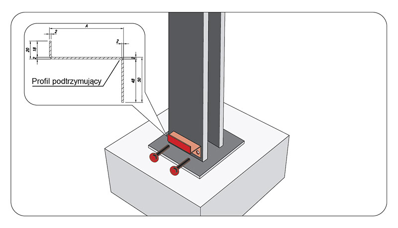 Montaż płyt poprzedzony jest przygotowaniem i zamontowaniem do słupów zetowników podtrzymujących. Zetowniki podtrzymujące powinny mieć długość równą szerokości słupa. Kształt i wymiar zetownika przedstawia rysunek 1.1. Ponieważ zetownik podtrzymujący jest elementem konstrukcyjnym, jego zastosowanie powinno być przewidziane w projekcie konstrukcji. Zetownik wykonywany jest na placu budowy lub w przygotowalni.
