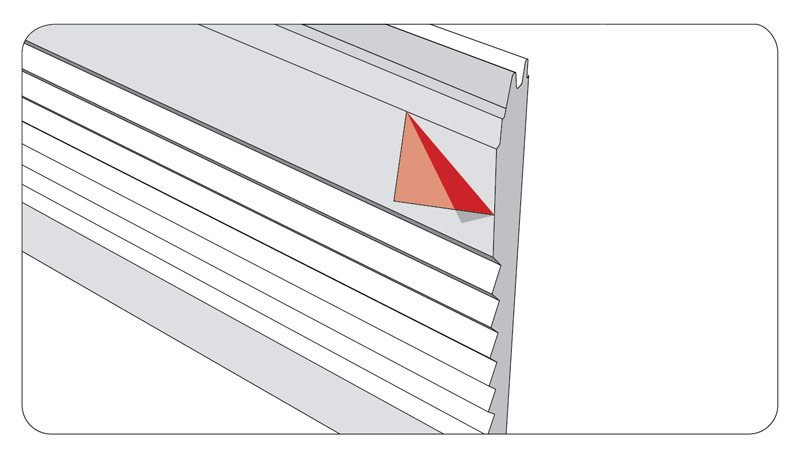 Podczas montażu obróbki należy zwrócić uwagę na ostrą krawędź „L”. Zachowanie ostrożności pozwoli uniknąć ewentualnego skaleczenia ciała oraz porysowania okładziny płyty warstwowej.