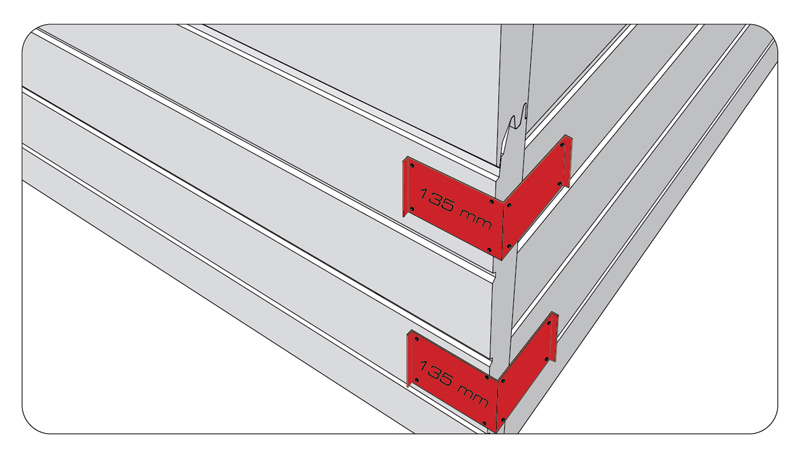 Mają one jeden wymiar stały (135mm) i drugi zmienny, zależny od grubości płyt ściennych zastosowanych na obiekcie. Jeśli płyty schodzą się w narożniku do czoła (nie są ścinane pod kątem 450), bok kątownika o stałym wymiarze powinien przypadać na płytę bez łączenia, a drugi (zmienny) powinien zachodzić poza styk płyt.
