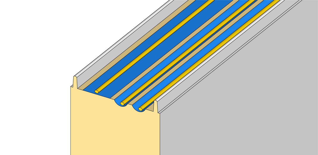 Płyta warstwowa Europanels z okładzinami metalowymi składa się z konstrukcyjno-izolacyjnego rdzenia połączonego w sposób trwały z zewnętrzną i wewnętrzną okładziną stalową. W przypadku płyt z rdzeniem styropianowym EPS, rdzeń klejony jest do okładzin przy pomocy specjalnego kleju na bazie poliuretanowej. W takim przypadku mówimy o nieciągłości rdzenia. Natomiast płyty z rdzeniem poliuretanowym PUR charakteryzują się ciągłością rdzenia (ciągłość fizyczna, termiczna), ponieważ rdzeń stanowi zarówno element izolacyjny, jak i klejący (adhezja do okładzin).